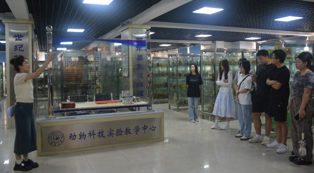 早上八点半活动准时开始,新生同学们依次入场,标本馆讲解团成员陈昕昕(2023兽医公共卫生硕士)和李恩珠(2023临床兽医学硕士)带领同学们有序参观标本馆,并为他们深入地讲解馆藏标本的制作、由来、用途等有关信息。在参观过程中,讲解员们耐心细致地为同学们讲述标本们的故事,普及兽医学相关知识,将课本上晦涩难懂的书面知识通过线下真实的眼观与娓娓动听的讲述生动形象地展现出来。