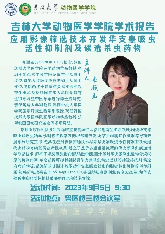 DB旗舰学术报告—应用影像筛选技术开发华支睾吸虫活性抑制剂及候选杀虫药物