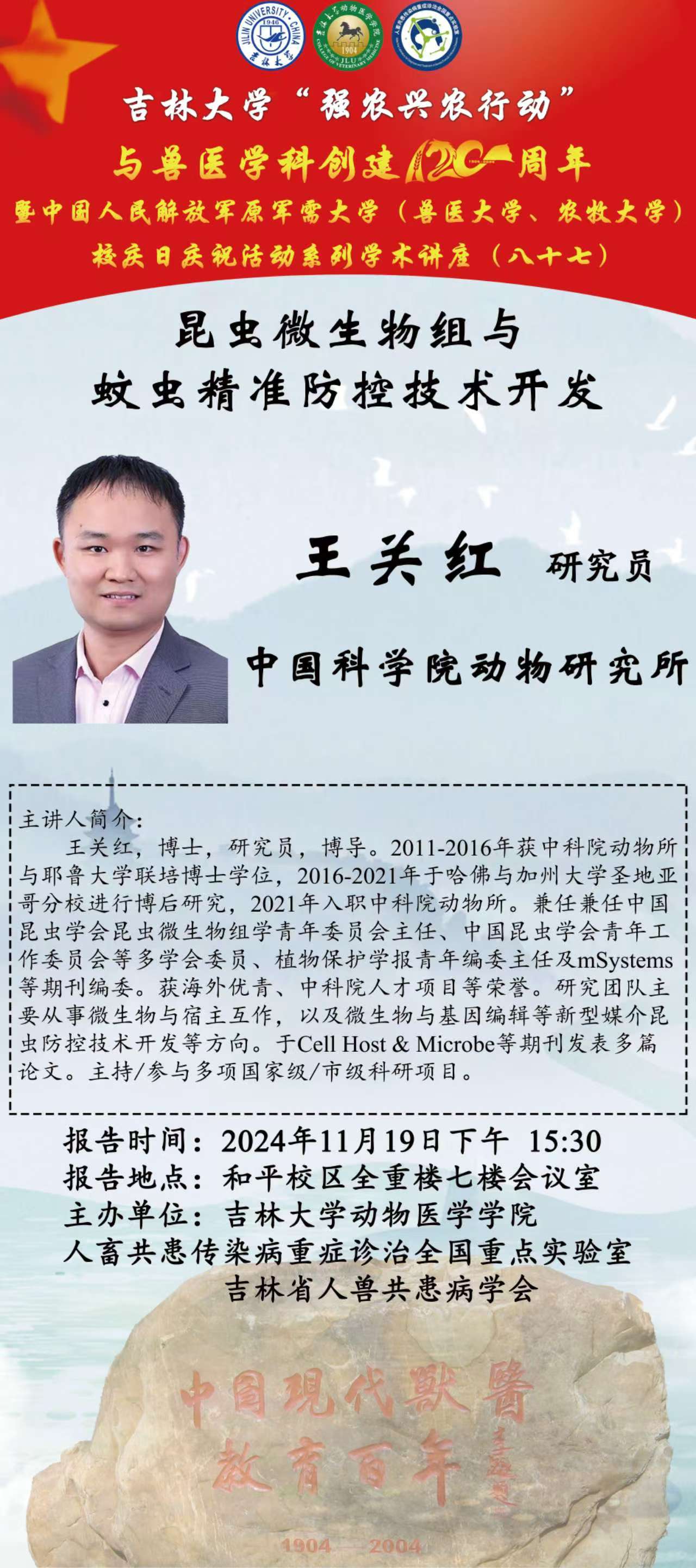 DB旗舰“强农兴农行动”与兽医学科创建120周年暨中国人民解放军原军需大学(兽医大学、农牧大学)校庆日庆祝活动系列学术讲座(八十七)