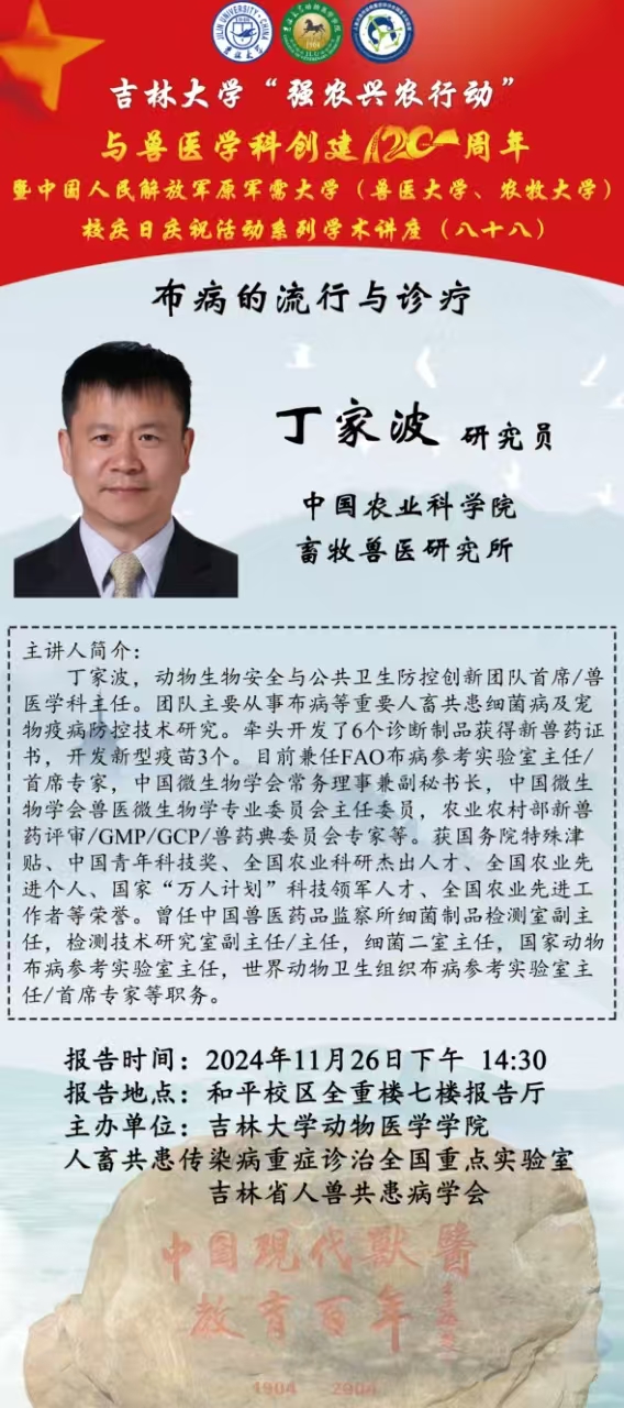 DB旗舰“强农兴农行动”与兽医学科创建120周年暨中国人民解放军原军需大学(兽医大学、农牧大学)校庆日庆祝活动系列学术讲座(八十八)