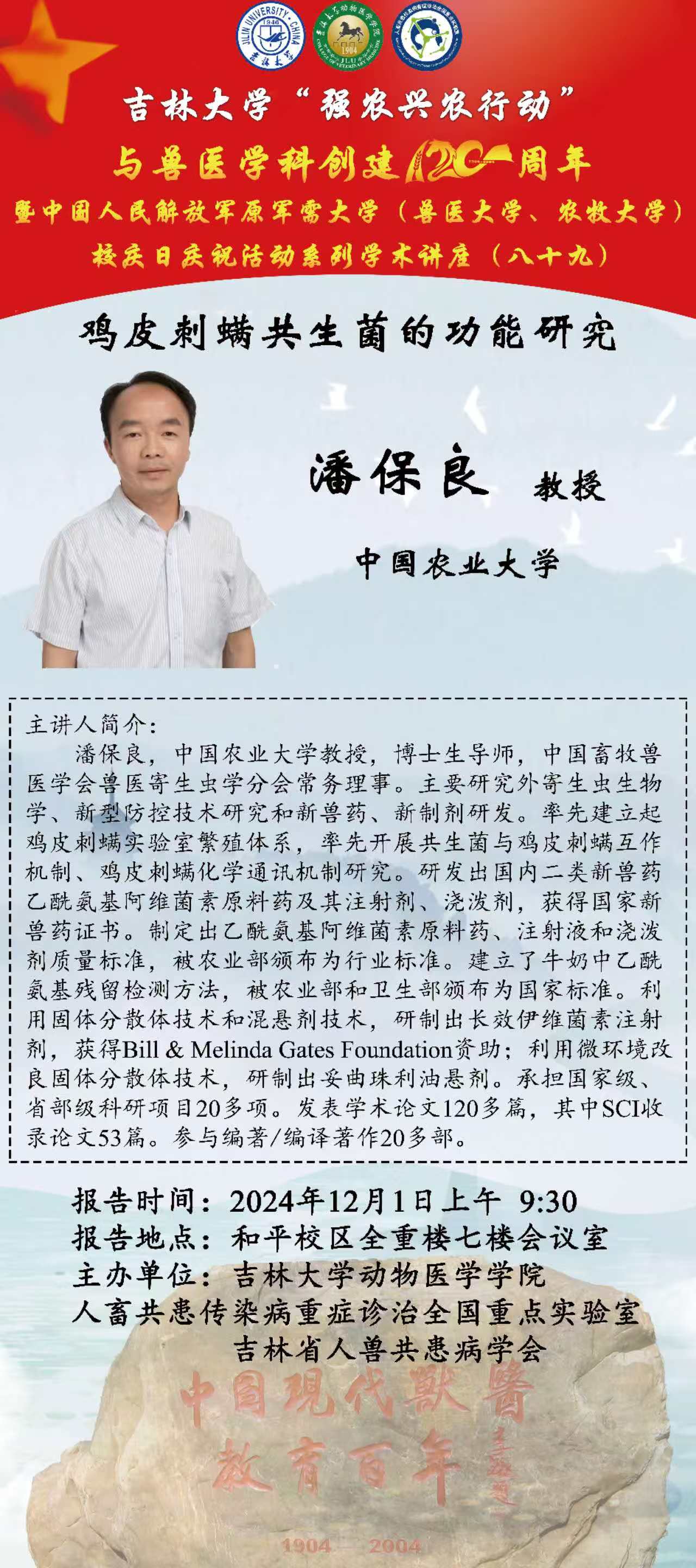 DB旗舰“强农兴农行动”与兽医学科创建120周年暨中国人民解放军原军需大学(兽医大学、农牧大学)校庆日庆祝活动系列学术讲座(八十九)