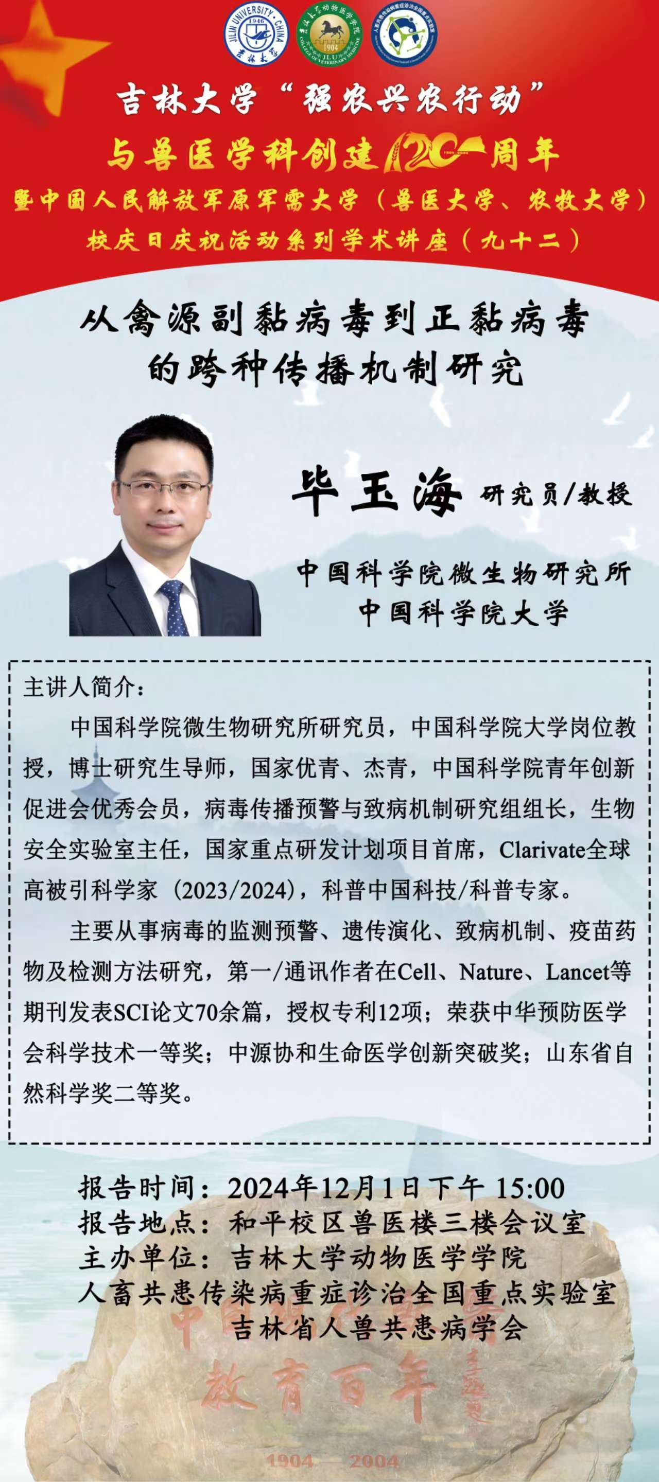 DB旗舰“强农兴农行动”与兽医学科创建120周年暨中国人民解放军原军需大学(兽医大学、农牧大学)校庆日庆祝活动系列学术讲座(九十二)