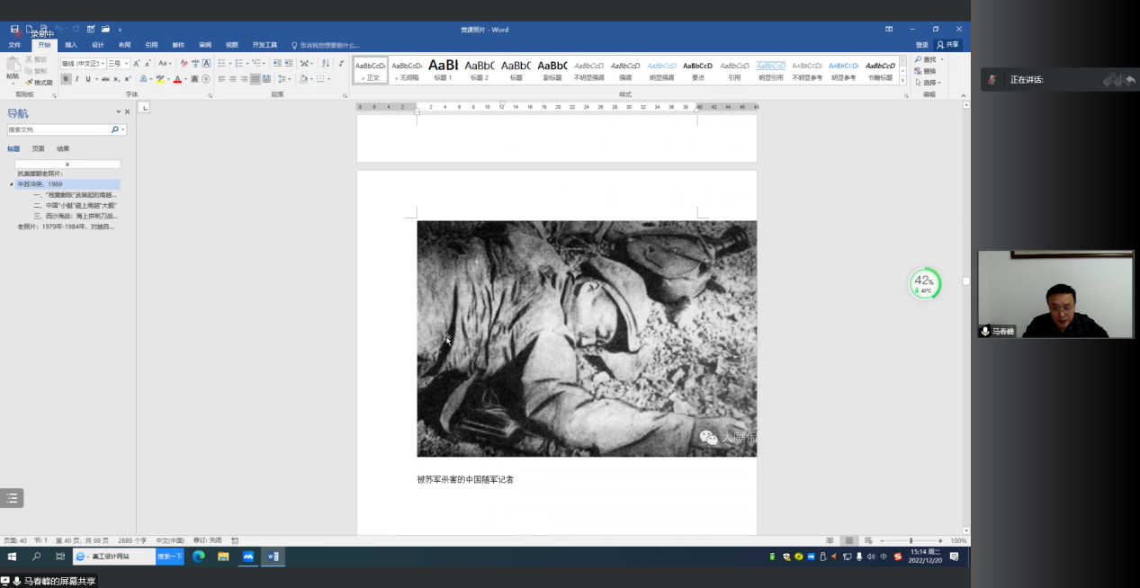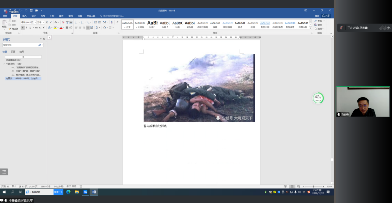 会议最后,马春峰经理播放了抗美援朝、中苏冲突、越南保卫战、中印边境自卫反击战西沙海战等珍贵影像资料,并用他的参军经历向同学们深刻阐释了“强国必强军,强军必拥军”的内涵。