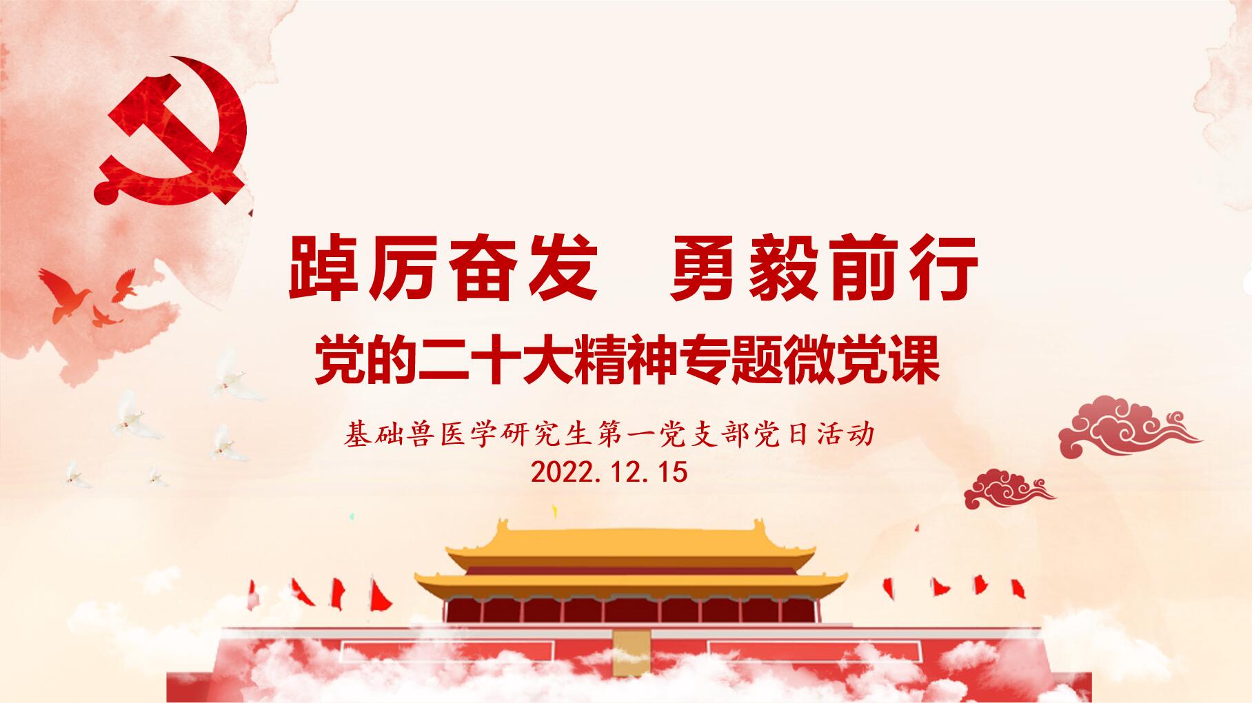 为了让支部党员能够对党的二十大精神有着更深的理解,DB旗舰基础兽医学研究生员工第一党支部通过线上方式于2022年12月15日组织了党的二十大精神学习微党课。