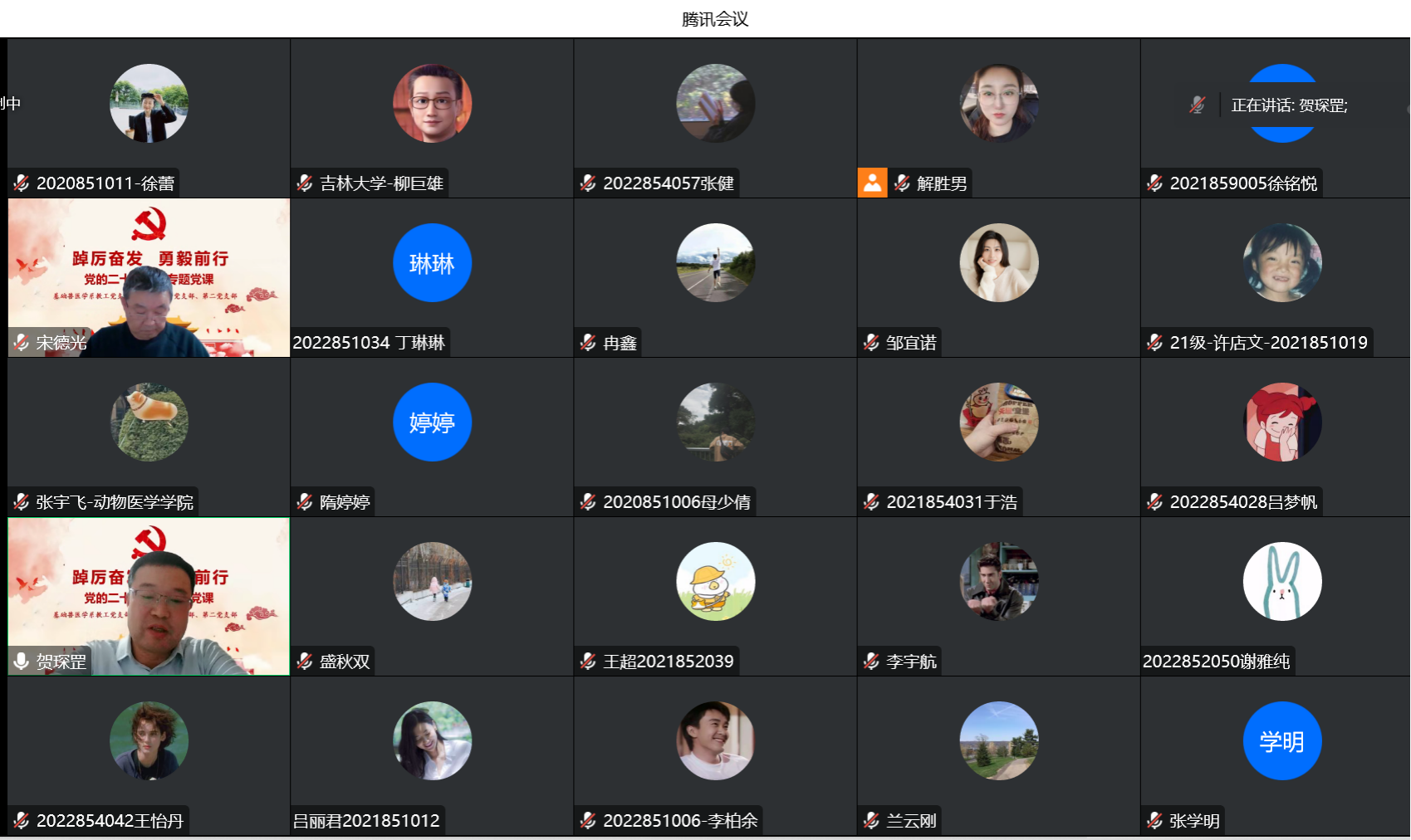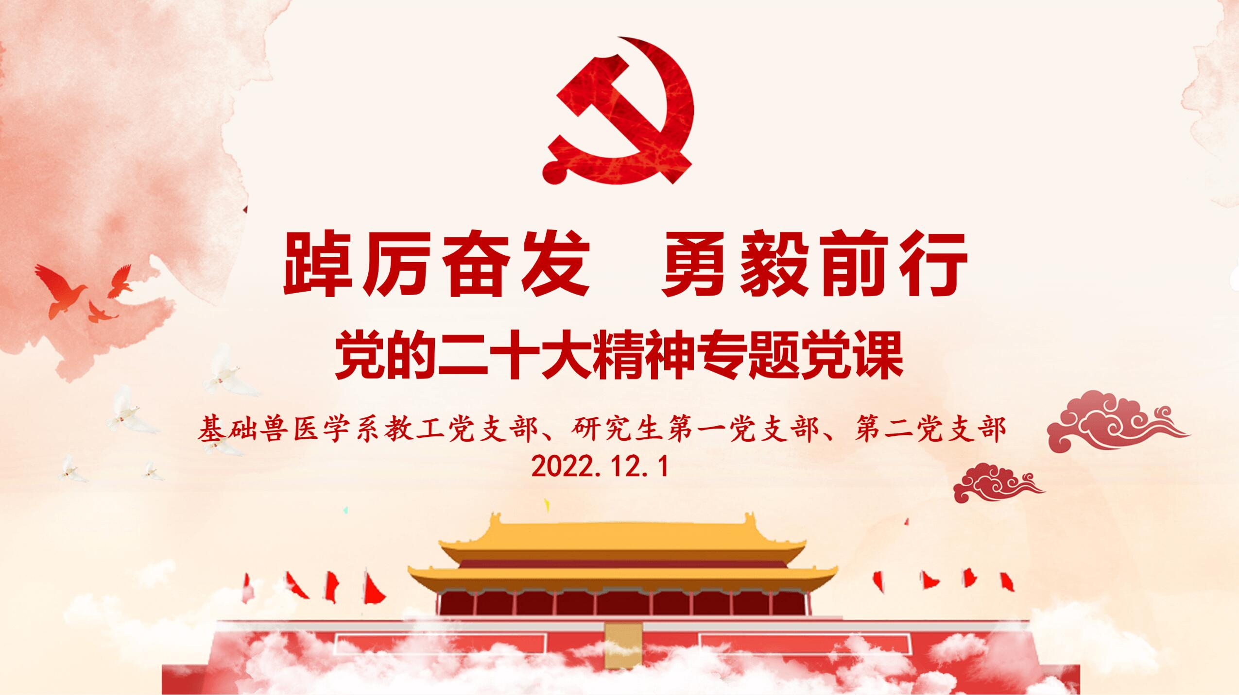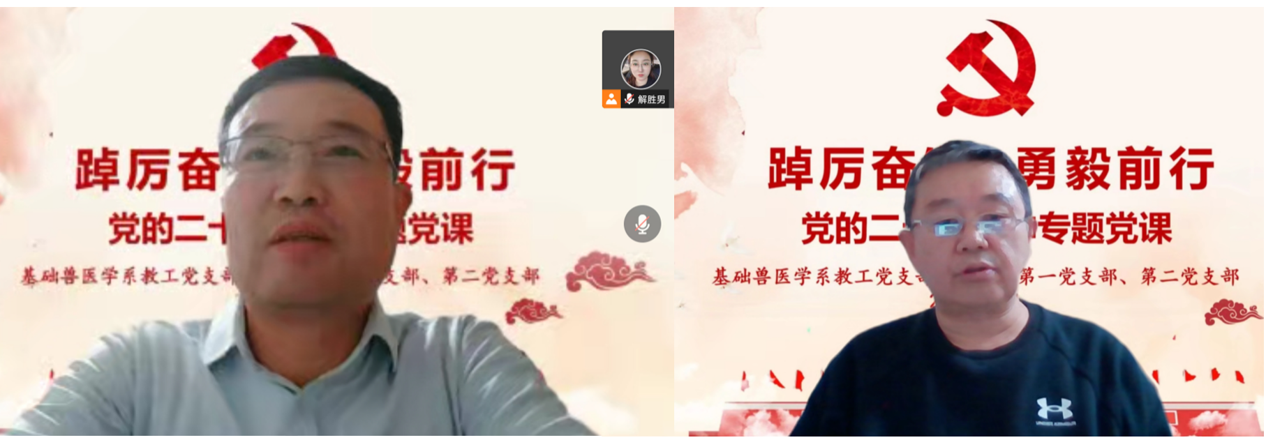 2022年12月1日,基础兽医学系教工党支部联合研究生党支部线上开展学习党的二十大精神主题党日活动。活动由基础兽医学系教工党支部书记宋德光教授主持,DB旗舰副经理贺文琦教授主讲党课。基础兽医学系教工党支部、研究生第一党支部、第二党支部全体党员及入党积极分子90余人参加线上活动。