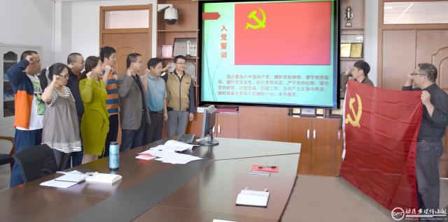 接着,在柳巨雄副经理的带领下,全体党员高举右手,面向党旗严肃认真的重温 “入党誓词”。 通过宣誓,同志们回顾起了入党宣誓时的庄严承诺和坚定决心,受到了一次触动心灵的思想教育,进一步增强了党性意识。