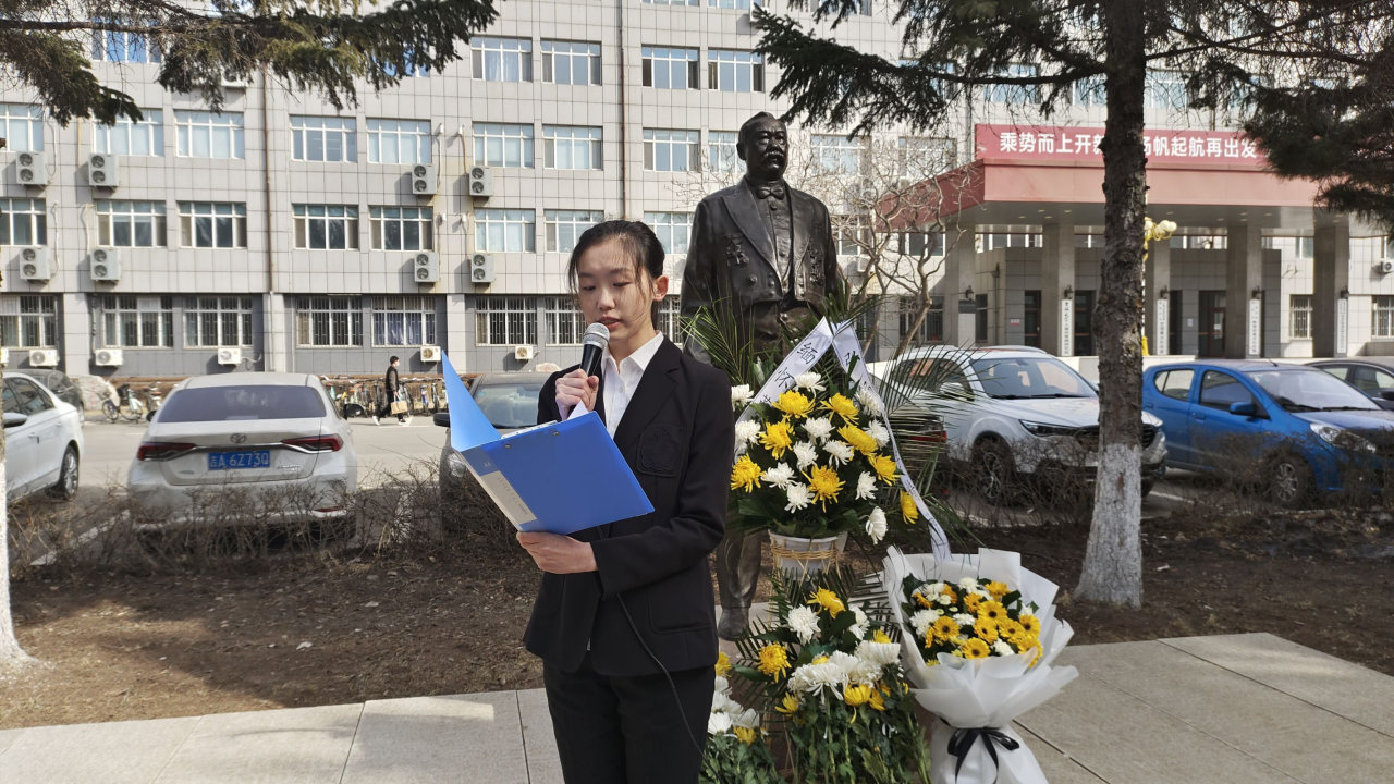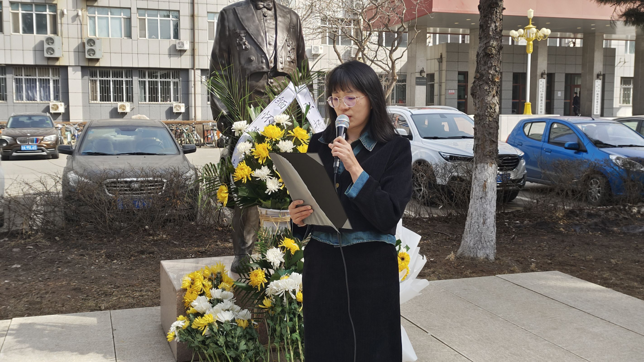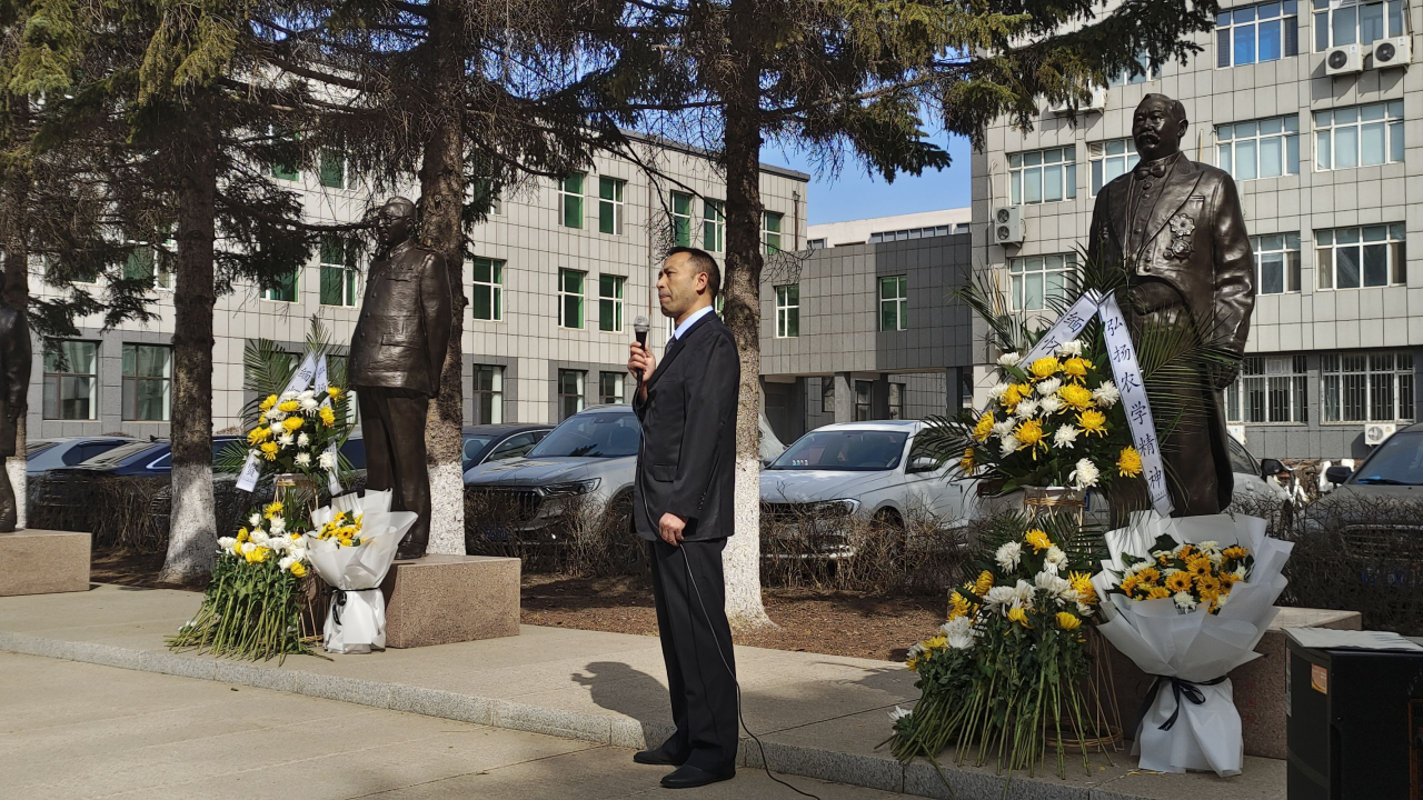 在仪式上,员工代表2022级本科生佟彤发言,号召同学们学习先贤品质,共铸兽医之魂。2023级试验班班主任张海丽教授代表公司教师发言,她表示要继承先贤精神和遗志,赓续红色基因血脉,自强不息,砥砺前行,要以满腔热血,为党育人、为国育才,与同仁共勉,共谱兽医教育之华章。