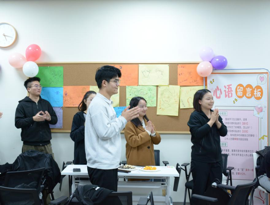 此次团体心理辅导活动不仅增强了同学们的团队意识,也激励大家一起面对未来的挑战。同学们不仅学会了有效的沟通技巧和冲突解决方法,还能在分享个人经历中感受到共鸣与支持。这种相互的理解和鼓励,有助于缓解焦虑情绪,提高心理韧性,使每位同学在面对学业、科研及生活中的各种压力时,能够更加从容不迫。同时提升了同学们的心理素质和团队协调能力,更为他们在研究生阶段的成长与发展提供了宝贵的支持和动力。