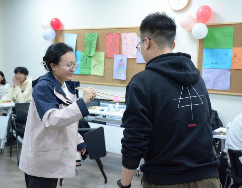 活动的第一部分是热身环节,精心设计的热身游戏不仅考验了同学们的协作能力,还增进了团队之间的默契。首先进行的是热身游戏“金龙拍拍操”,这个充满活力的游戏让大家放松身心,迅速融入到活动中。