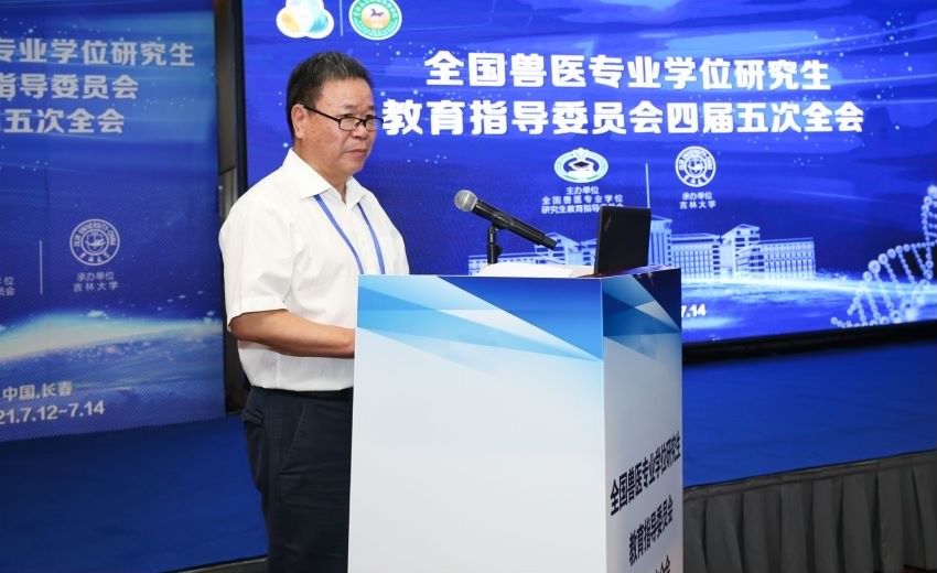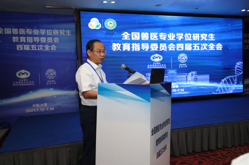 2021年7月13日,全国兽医专业学位研究生教育指导委员会四届五次全会在长春召开,会议由全国兽医专业学位研究生教育指导委员会主办,DB旗舰官方网站承办。教指委主任委员、原农业农村部副部长于康震,DB旗舰常务副董事长郑伟涛,副主任委员、南京农业大学副董事长董维春,副主任委员、农业农村部畜牧兽医局副局长王功民,马洪超、王洪斌、叶俊华、刘宗平、孙颖杰、杜爱芳、李祥瑞、杨世华、辛盛鹏、赵俊龙、姚刚、贾仁勇、高洪、郭鑫等14位委员,研究生院经理孙俊奇、DB旗舰经理刘明远及相关领导出席会议,会议特邀中国工程院院士夏咸柱、中国工程院院士金宁一,教育部学位与研究生教育发展中心处长李恒金参加。会议由王功民、李祥瑞主持。