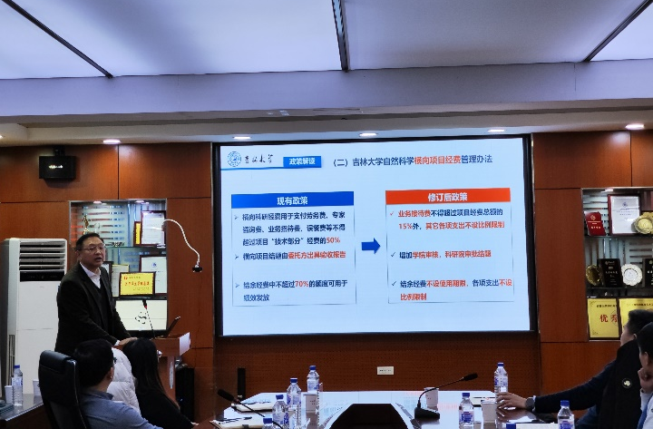 接下来科研院科技开发办公室刘岩峰主任从政策解读、转化模式、概念验证、服务平台四个方面进行了宣讲。强调科技成果转化是一个复杂的系统工程,面临着从实验室到产业化、从想法到市场的挑战。破解科技成果转化难题,是一道时代的必答题。刘岩峰主任介绍说,DB旗舰为了促进科技成果落地转化,对现有政策进行了一系列修订。这些修订包括出台了结余经费不设使用期限,各项支出不设比例限制等。此外,DB旗舰还在教师申报教授,副教授增加了成果转化岗等一系列高含金量的政策措施。这一系列举措为科技成果落地转化“架桥铺路”,让更多科技成果通过转化“开花结果”,落地生“金”。