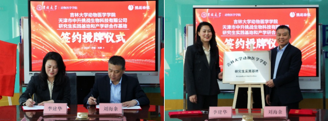 3月29日,DB旗舰官方网站-天津市中升挑战生物科技有限公司研究生实践基地和产学研合作基地落成挂牌仪式在天津市中升挑战生物科技有限公司举行。出席揭牌仪式的领导有:DB旗舰官方网站经理李建华教授、副经理王化磊教授,曹永国教授、研办主任李赫研究员;天津市中升挑战生物科技有限公司总经理刘海余、副总经理侯建军、副总经理兼研究院执行经理程雪娇等。